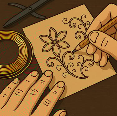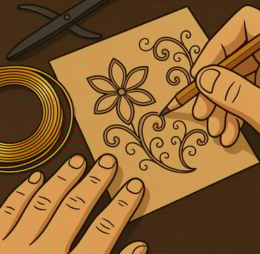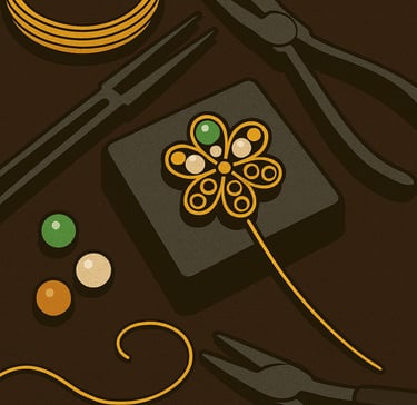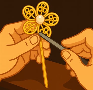 金絲纏繞出花形輪廓,將各組件以微焊技法固定