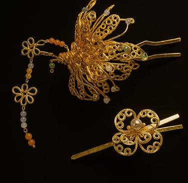 金繡是中國傳統刺繡藝術中最華麗的一種,以真金線、銀線與絲線交織而成,工藝繁複、光彩奪目。它承載著古代宮廷服飾與宗教藝術的精湛技藝,融合審美與匠心。