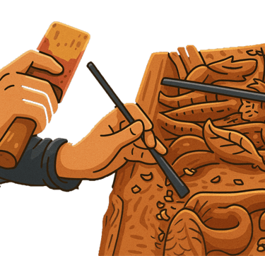 木雕是以木材為原料,透過雕、刻、鑿、磨等傳統技法製成的工藝。匠人因材施藝,將木材的紋理與形態化為器物與藝術,既實用,又富於審美價值。每一道刀痕都凝聚著匠人的心血與匠心,體現出民族文化的深厚底蘊與獨特美學。